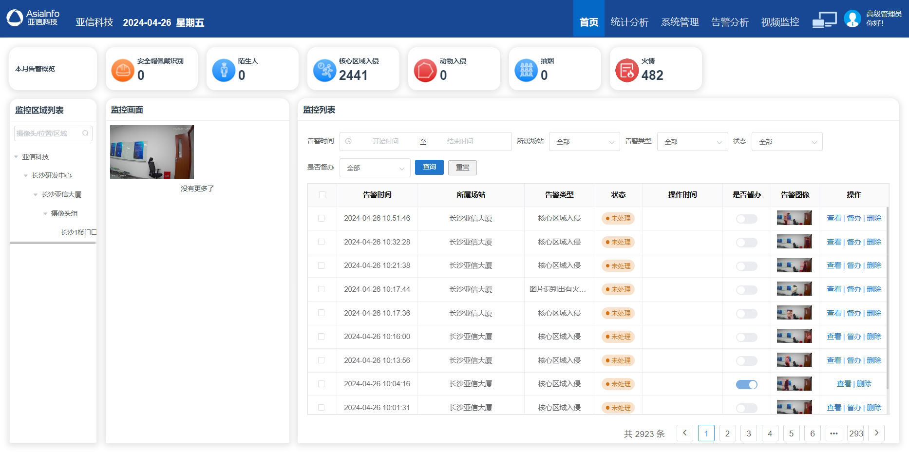 Since the AI-powered video recognition and hierarchical management and control platform was put into test run, the energy team of AsiaInfo has been stayed on the front line of business operation to ensure the normal operation of the system. During this period, the intelligent inspection system has achieved round-the-clock and fully-autonomous regular monitoring, greatly ensuring the safe and stable production of the enterprise. Taking fire risk monitoring as an example, the platform has issued a total of 592 alerts, effectively identifying fire hazards and ensuring prevention before the fire ignites.