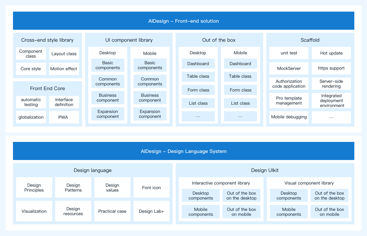 AISWare AIDesign is a tool set and development platform for design & front-end,including UIUX-oriented design language system,development-oriented front-end UI framework ,engineering-oriented scaffolding tools, which can help companies build their own design language system. Improve the design and development efficiency of enterprises, and enhance the user experience of products.