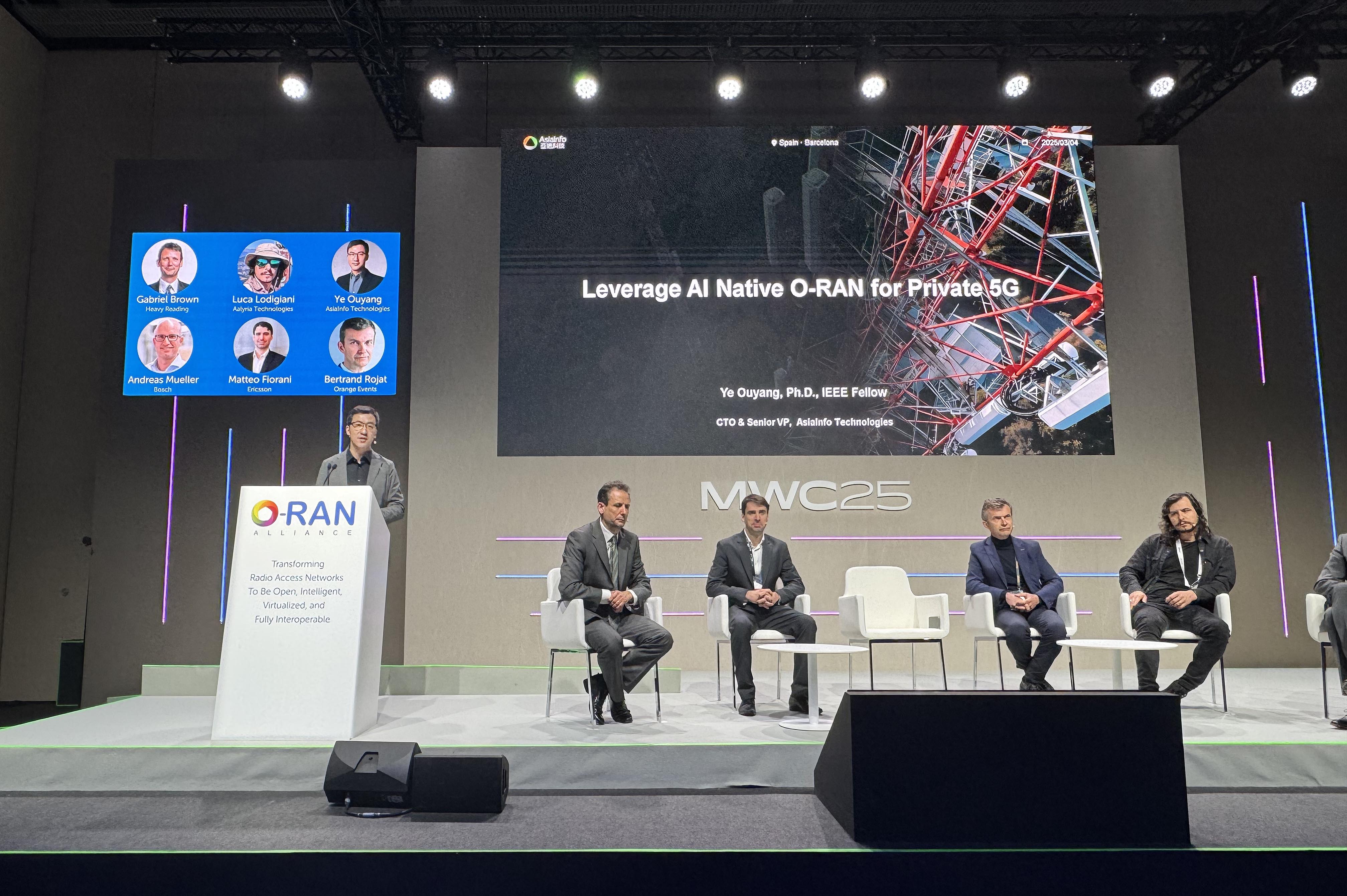 3月4日,欧阳晔出席O-RAN Alliance Summit(O-RAN联盟峰会),并做《AI原生O-RAN助力5G专网》主题演讲。他指出,在AI Native时代,RAN(无线接入网络)正加速向Open RAN与AI RAN演进。基于O-RAN标准架构,亚信科技提出AI原生O-RAN方案,并通过通感算智一体、AI Native RIC、无线网络节能、基站联邦学习、智能UE接入控制与MCS智能调制六项关键技术,推动O-RAN的自动化与智能化水平提升,探索AI-Native 6G网络的发展路径。此外,他还介绍了AI原生O-RAN通感算智一体技术在能源5G专网的实践,助力能源行业客户加速数智化转型。